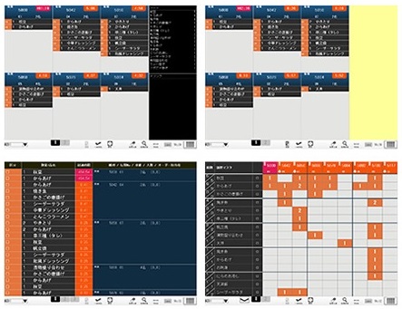 画面は、伝票一覧、調理順、テーブル別、調理ポジション別など、複数の表示パターンから選択可能。人数や混み具合に合わせて適した画面に切り替えることができます。