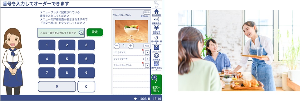 メニューNo入力対応で、メニューブックを見ながら注文したいお客様のニーズにも対応