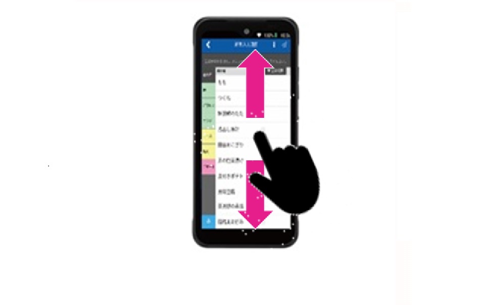 スマートフォンのスワイプ操作のように、ハンディターミナルの画面をスクロールできます。見やすい箇所で画面を止めることができるため、複数ページにまたがるメニュー選択や注文内容の確認がしやすくなります。