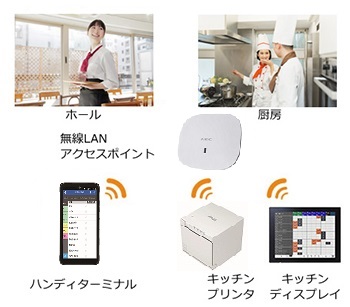 ハンディターミナルから注文の数量、調理指示、提供順が厨房のキッチンプリンタに送信されるので、手書き伝票の読み間違えや伝達ミスを防ぎ、調理ミスと食材ロスを低減します。