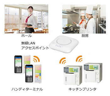 オーダーエントリーシステムの導入で構築した無線LAN環境をお客様にも開放し、店舗内で公衆無線LANスポットサービスを提供可能。