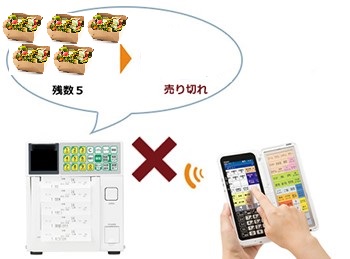 厨房で特定のメニューの食材が少なくなってきた場合に、厨房のキッチンプリンタにメニューの残数を登録することで、注文されるごとに登録したメニューの残数が減算され、売り切れるとハンディターミナルからの注文が受けられなくなります。ホールスタッフの売り切れ商品のオーダーミスを防止します。