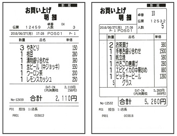 フロア伝票はお客様に会計内容を確認していただくためにお渡しする伝票です。 ヘッダー、ボディ、フッターの組み合わせで、店舗・業態ごとに雰囲気に合った伝票フォーマットを選択できます。