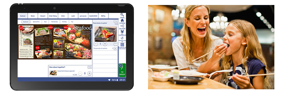 セルフオーダーシステム「FoodFronita St」の電子メニューなら、デジタル画像で料理の写真を見ながら注文することができます。鮮度や素材の魅力を表現し、つい注文したくなる商品のアピールができるので、注文数とお客様の満足度アップに貢献します。