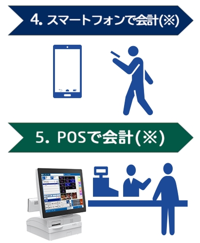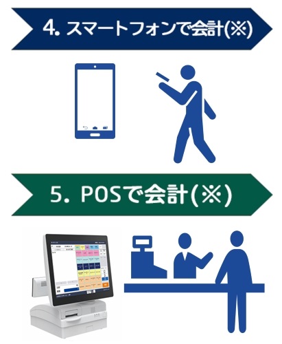 お食事後、スマートフォン上で会計、あるいはPOSで会計を行います。