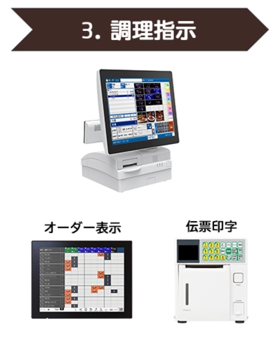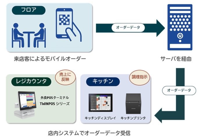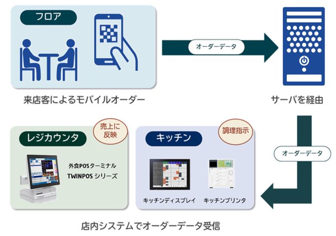 モバイルオーダーからの注文がPOS・オーダーエントリーシステムに反映されます。