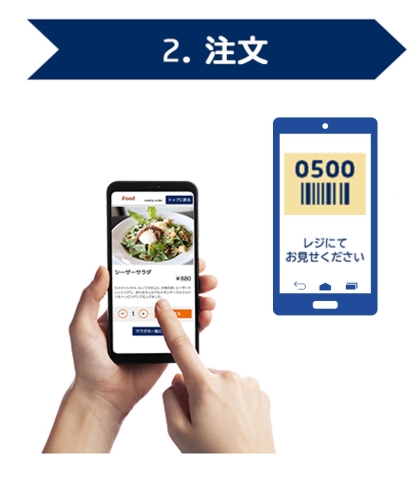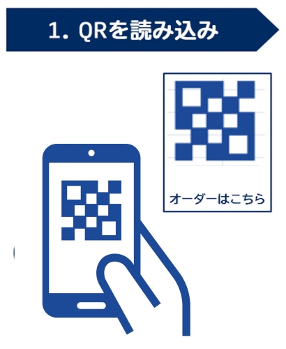 QRコードを読み込むだけで注文ページにアクセスでき、専用アプリが不要で手軽に注文。