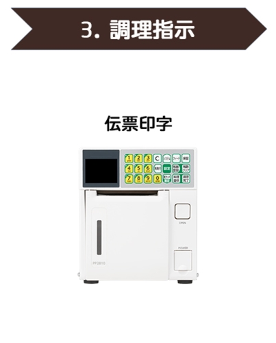 調理完了後、お客様番号をもとに商品の受け渡しを行います。