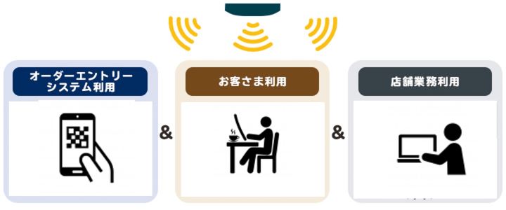 オーダーエントリーシステムの導入で構築した無線LAN環境をお客様にも開放し、店舗内で公衆無線LANスポットサービスを提供可能。
