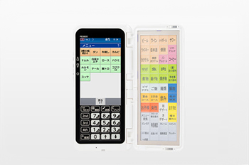 「おすすめの料理は?」、「この料理に合う飲み物は?」などお客様との会話の中から注文数を増やしたいというお店におすすめなのがオーダーエントリーシステムです。ホールスタッフが携帯するハンディターミナルは、簡単なボタン操作でスムーズに注文業務をおこなうことができます。また、お店のイチオシメニューはハンディターミナル上ですぐに確認できるので、スタッフのスキルに依存することなくお客様へご案内をおこなうことができます。