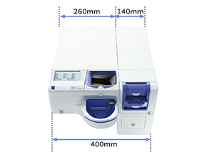 紙幣・硬貨の各ユニットを横置き設置しても幅は400mmとコンパクト。スリムな端末でも紙幣・硬貨の入出金口をそろえた使い勝手のよいレイアウトが可能です。
