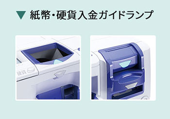 紙幣の入金口には、入金しやすいように光るガイドが採用されています。