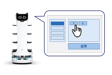 キュートな表情とAI音声を備えた配膳ロボットです。人とスムーズなコミュニケーションを取りながら、飲食店の課題解決に貢献します。