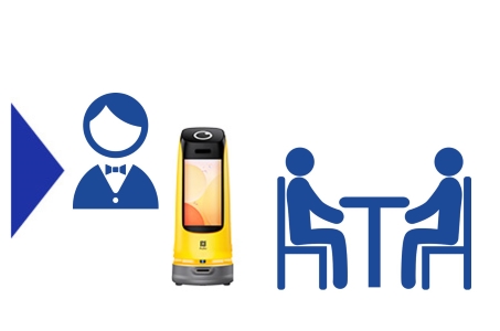 スタッフが入口でロボットを操作すると、指定した席まで案内します。