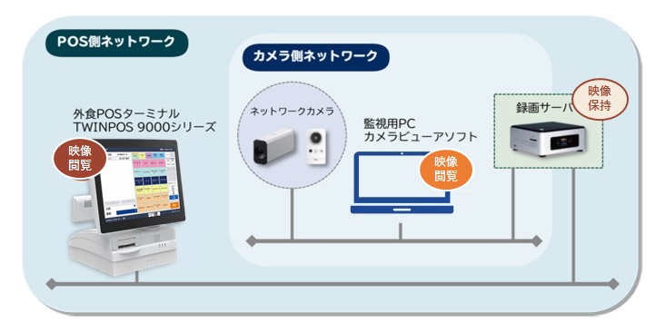 ネットワークカメラでPOSレジ操作を映像記録する「ジャーナル連携カメラシステム」。不正行為を抑制し、POSレジ周りのセキュリティ強化に効果絶大。記録した接客映像などを従業員教育へ活用すれば、人材育成にも役立ちます。