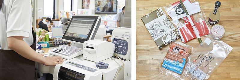 浜田市観光協会様の特産品販売所においては、「売上管理と委託計算、値札ラベル発行、自動釣銭機、軽減税率制度への対応など、必要としている機能に絞り込むことで、スムーズなシステム移行と、低価格を実現しました」と取締役営業部長 天坂 憲隆氏は説明します。