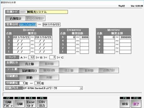※顧客購買履歴一覧表で、抽出結果を印刷、Excel出力、またはCSV出力することができます。