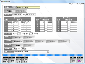 過去の売上データをもとにRFM分析(購買日、購買回数、購買金額)をおこなうことができ、ランク別に集計することで、マーケティング施策への活用や、優良顧客への効果的な販売促進に役立てることができます。