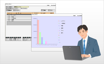 売上分析、在庫管理、顧客管理はもちろん、発注、仕入、棚卸、電子ジャーナルの検索、委託計算、出退勤データの管理や、業者請求、売掛の管理など、豊富な管理機能で小売業の効率的な経営をサポート。