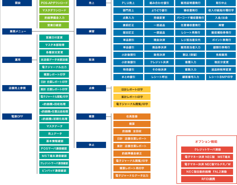 キャッシュレス決済、自動釣銭機と連携した釣銭管理など、 オプション機器も充実し、混雑時もスムーズで正確な会計を実現します。