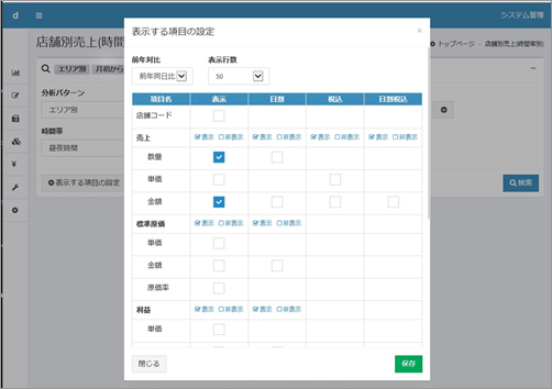 小売業向け店舗管理システム「d-Pack」は、店舗、部門、商品、担当者、時間帯、客層など、POSシステムからのデータを縦軸、横軸に切り替えて参照可能。表示項目の設定やデータ出力機能(EXCEL、PDF)により、効率よく確認が行えます。