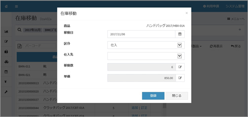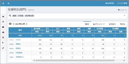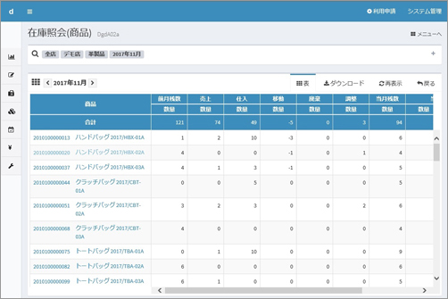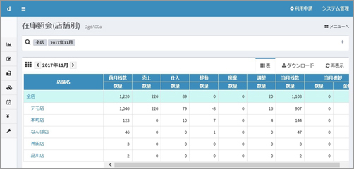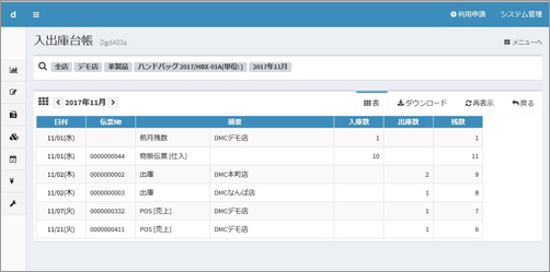 POSで売上げた出庫数、在庫移動と棚卸で入力された在庫数の確認が行えます。いつ、入出庫したかを入出庫台帳で確認することができます。